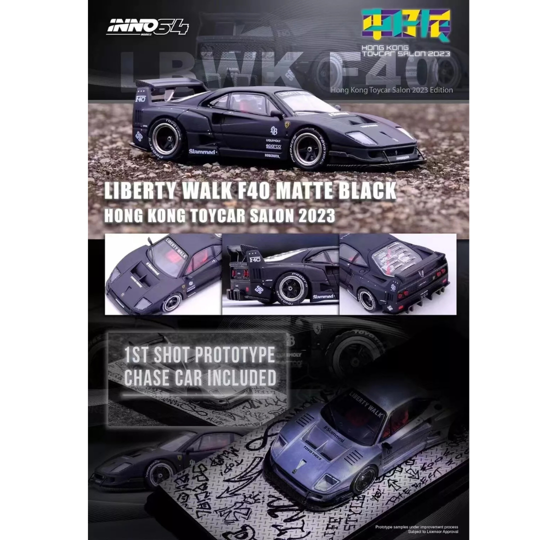 Inno64 Ferrari F40 LBWK Expo Toy Car Salon Hong Kong 2023 Negro Mate 1.64 EDICIÓN ESPECIAL
