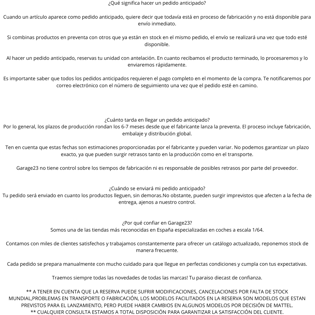 Modelo a escala 1/64, ideal para coleccionistas y amantes del diecast.