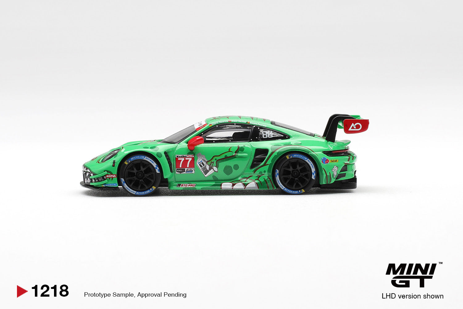 ***PRE ORDER *** LLEGADA APROXIMADA ULTIMO TRIMESTRE 2026 *** PUEDE SUFRIR RETRASOS ***Mini GT ¨REXY BRACKETS¨ PORSCHE 911 WINNER 2025 (992) GT3 R #77 AO RACING SEBRING 12 HRS CLASS # 1218